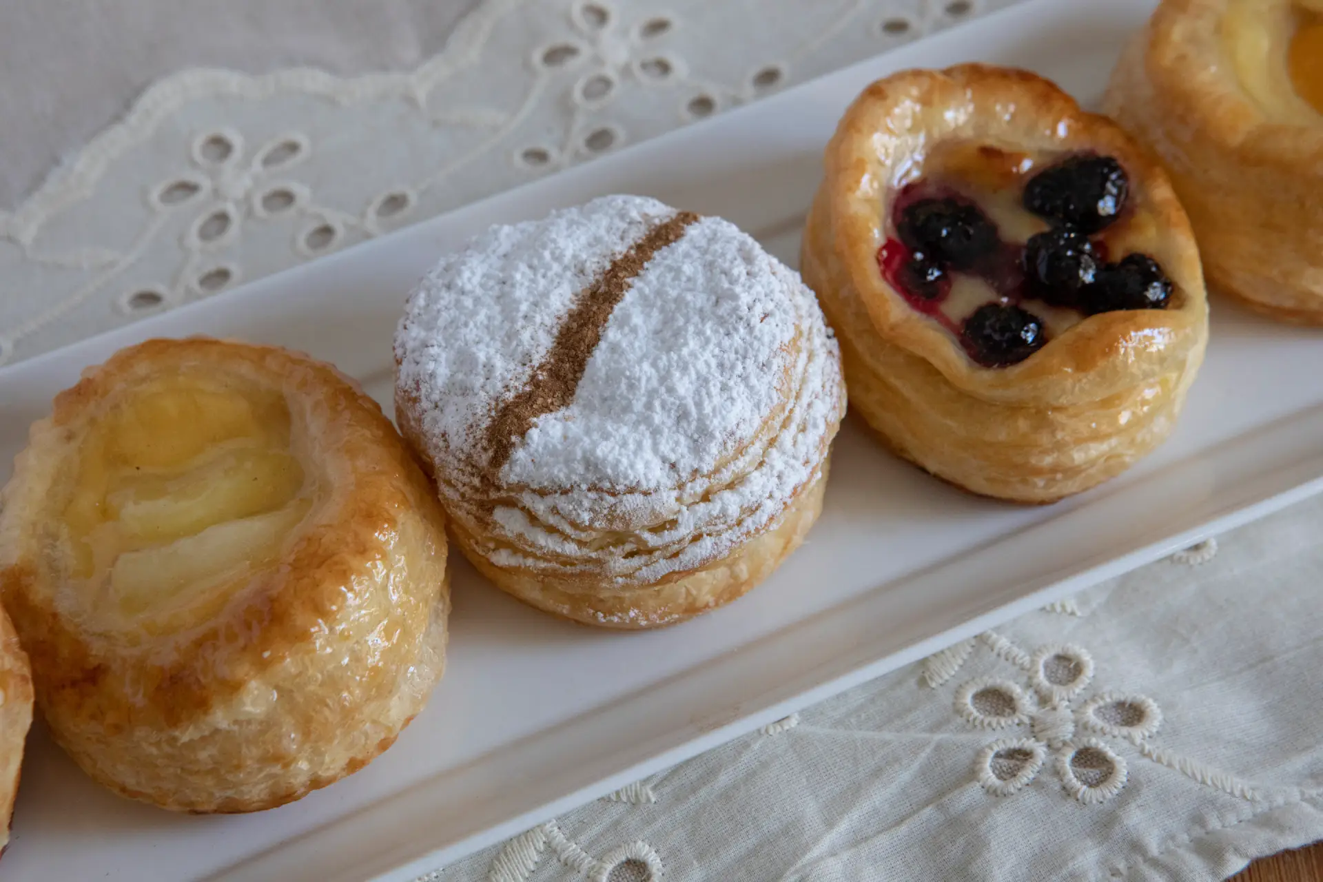 Una spirale irresistibile di sapori: strati di sfoglia farciti con crema pasticcera e frutti di bosco.