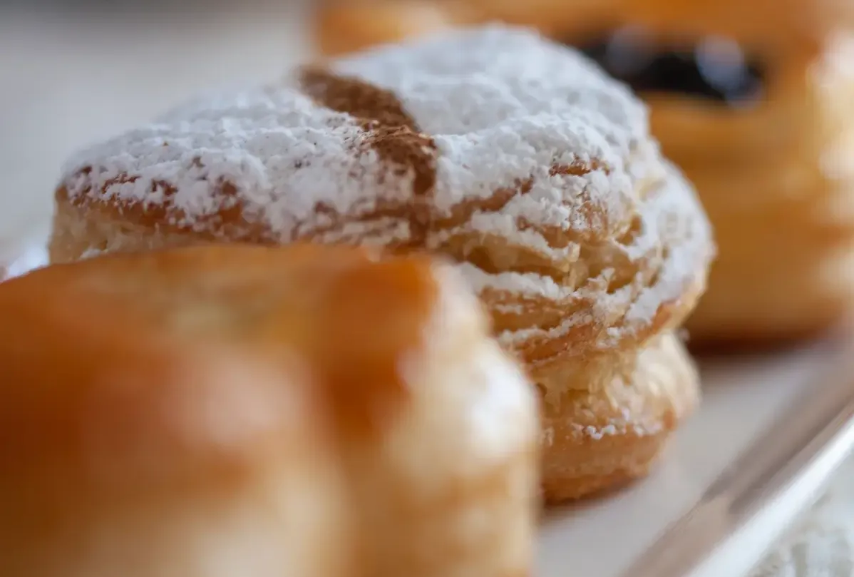 Una spirale irresistibile di sapori: strati di sfoglia farciti con crema pasticcera e uva sultanina, aromatizzati alla cannella e ricoperti di lamelle di mandorle croccanti.